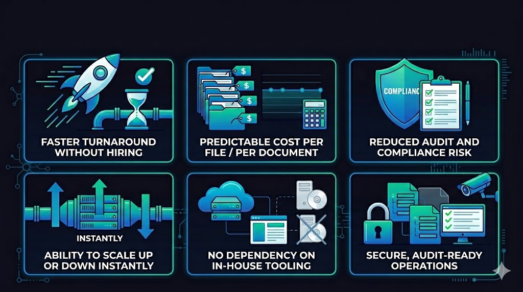 Mortgage teams often struggle with fluctuating volumes, tight SLAs, and document-heavy back-office work that doesn’t justify permanent headcount or large platform investments.